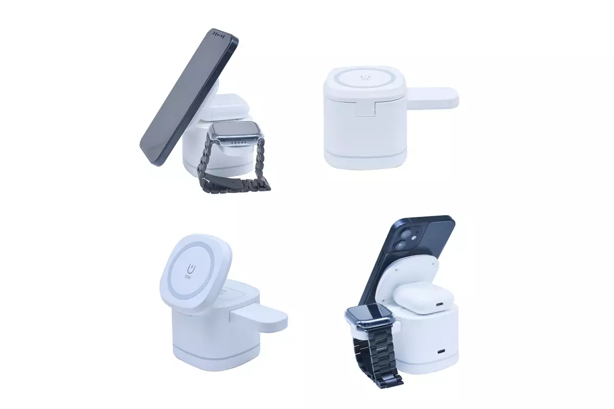 Çok fonksiyonlu şarj istasyonu Kablosuz şarj cihazı 15W hızlı şarj MAGSAFE özelliği Telefon,akıllı saat ve kulaklık için kablosuz şarj özelliği